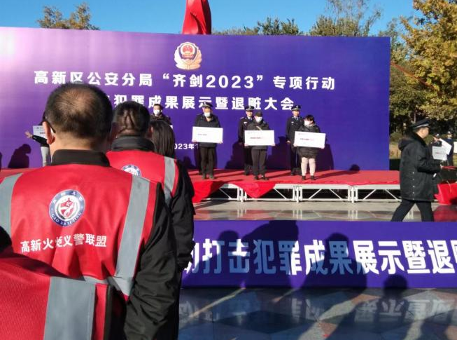 近日,高新區(qū)公安分局在火炬公園隆重舉行“齊劍2023”專(zhuān)項(xiàng)行動(dòng)打擊犯罪成果展示暨退贓大會(huì),金盾公司派出12名員工作為高新火炬義警參與此次執(zhí)勤。