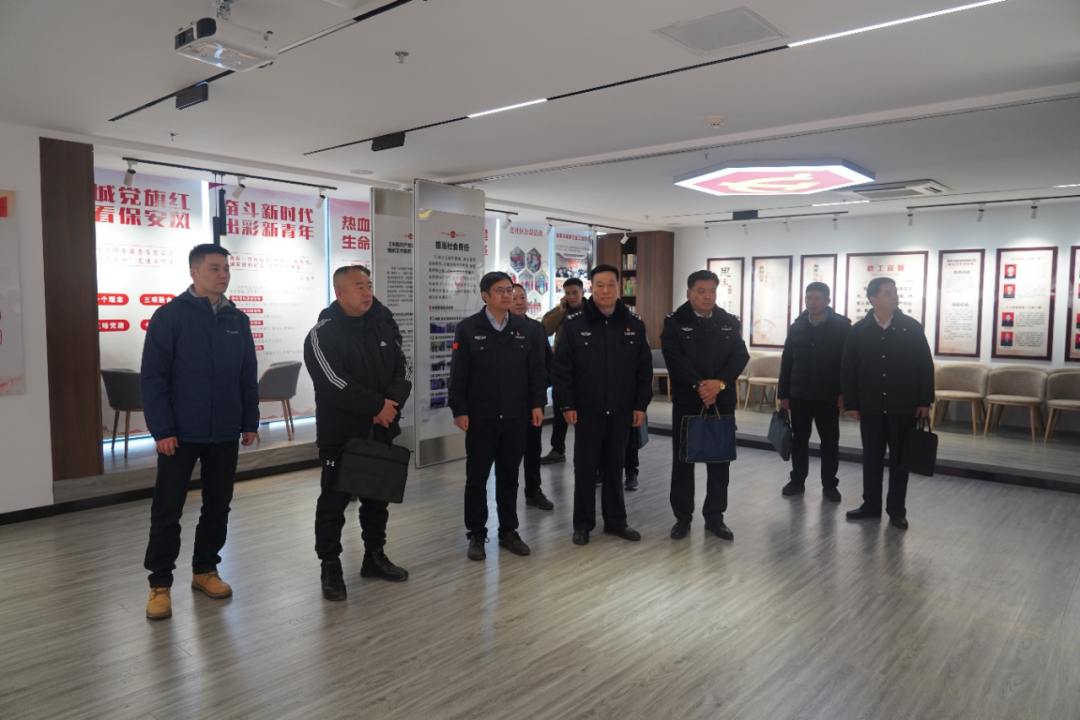 調(diào)研組實地參觀了淄博市保安服務(wù)有限公司政治生活館、指揮中心、體能訓練館、榮譽長廊。座談會上,淄博市公安局治安支隊分管大隊長李春江介紹了公安機關(guān)保安監(jiān)管工作,淄博市公安局治安支隊一級警長林長見介紹了我市警保聯(lián)勤聯(lián)動的主要做法,淄博市保安協(xié)會會長、淄博市保安服務(wù)有限公司黨委書記、董事長付志欣介紹了公司近年來守正創(chuàng)新發(fā)展情況。隨后就警保聯(lián)勤聯(lián)動、保安行業(yè)發(fā)展等方面,雙方做了詳細探討并互相交流了經(jīng)驗。